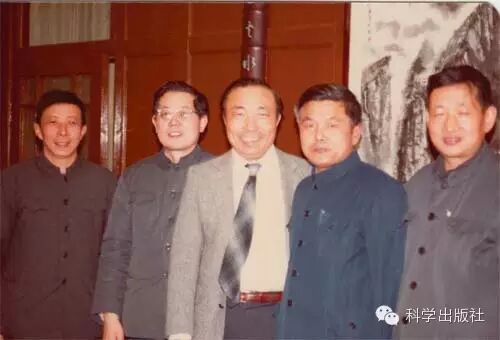 1982年(左起)于渌、周光召、伍法岳、郝柏林、蒲富恪合影