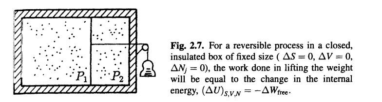 , 因此等压系统通过膨胀或者热传导向环境传递的能量就是焓变. 类似地, 等温系统在可逆过程中做的功就是系统 Helmholtz 自由能的减小.