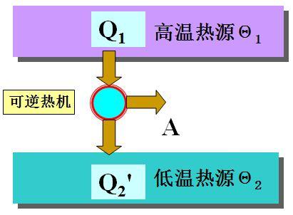 由上不等式,我们得 到$\frac{Q_2} {T_2}>=frac{Q_1}{T_1}$。如果我们定义$Q_2$是热机从低温热源的热量,那么显然原不等式中$Q_2$前面需要 加上一个 负号,那么不等式可以改写为:$frac{Q_1}{T_1}+\frac{Q_2}{T_2}<=0$,那么这个不等式得到的就是热机作为一个 系统从两个热源中吸收的热量$Q_1$、$Q_2$与两个热源满足的不等式关系。如果热机从n个热源中吸收 了$Q_1$、$Q_2$、$Q_3$...$Q_n$的热量,可以证明满足不等式:
